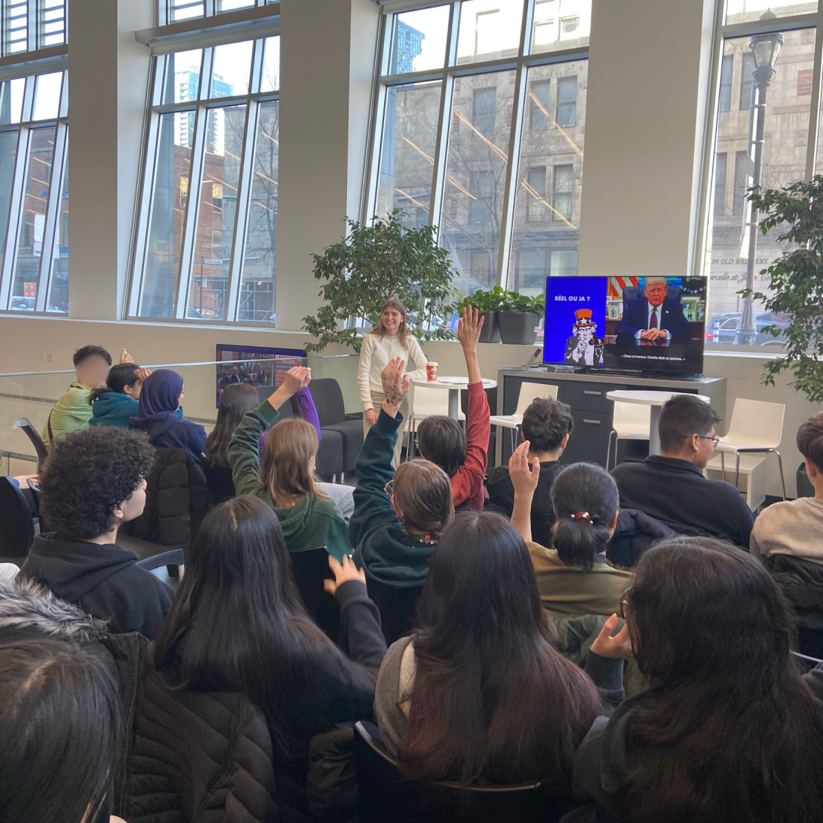 Le 18 mars dernier, un groupe de quatrième secondaire de l’école André-Laurendeau, à Saint-Hubert, a eu la chance de visiter les bureaux de La Presse et d’y suivre notre atelier Prends ton info en main! avec la journaliste Léa Carrier.
